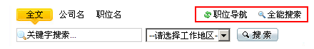 如上图所示红框位置,通过《职位导航、全能搜索》获知企业招聘信息。